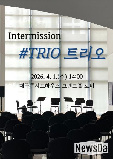 뉴스다 최광묵 기자 | 대구콘서트하우스는 오는 4월 1일 오후 2시, 따뜻한 봄볕과 함께 일상의 쉼표를 선사할 ‘2026 클래식 오아시스 '인터미션 #트리오'’ 공연을 그랜드홀 로비에서 개최한다.