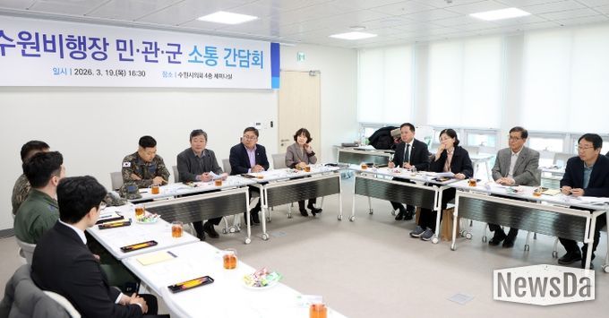 뉴스다 최광묵 기자 | 수원특례시의회는 19일 의회 세미나실에서 공항 소음피해지역 주민들과 군, 시 관계자가 함께하는 ‘민·관·군 소통 간담회’를 개최하고 소음피해 해소를 위한 실질적인 대응 방안 마련에 나섰다.