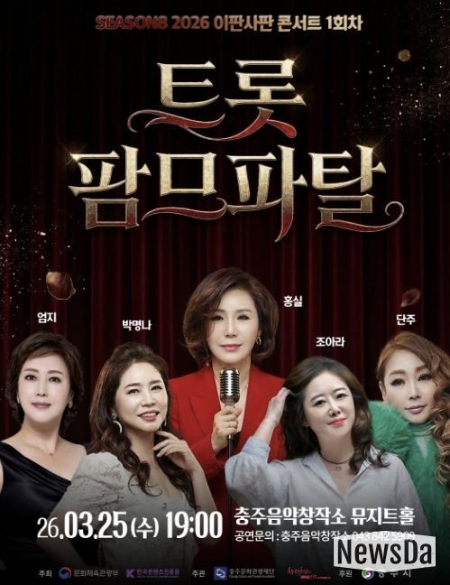 뉴스다 최광묵 기자 | 충주음악창작소는 오는 3월 25일 오후 7시 창작소 뮤지트홀에서 2026 음악창작소 프로그램 운영지원 사업 ‘이판사판 콘서트 시즌8’ 1회차 공연 ‘트롯 팜므파탈’을 선보인다.