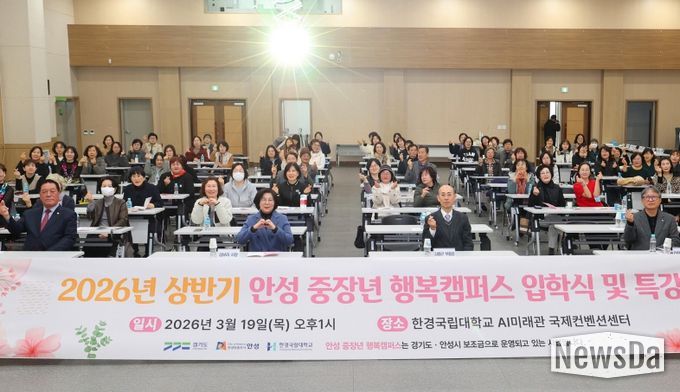 뉴스다 최광묵 기자 | 안성시는 3월 19일 오후 1시 한경국립대학교 미래융합기술연구센터 국제컨벤션센터에서 “2026년 안성 중장년 행복캠퍼스 상반기 정규과정 입학식을 성황리에 개최했다.