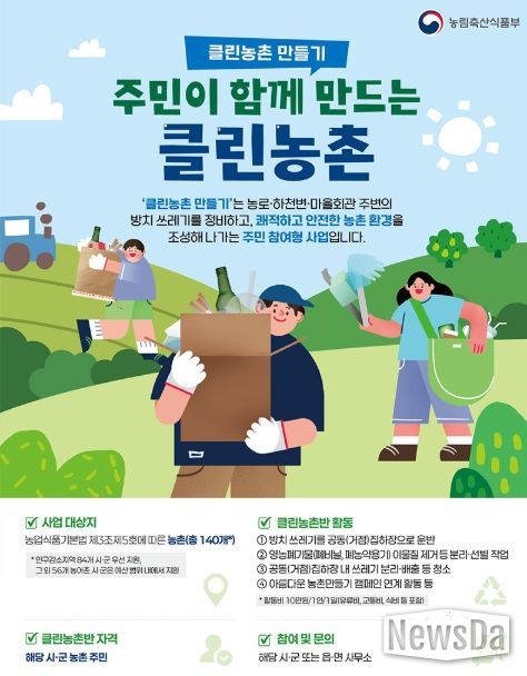 뉴스다 최광묵 기자 | '클린농촌 만들기'는 농로·하천변·마을회관 주변의 방치 쓰레기를 정비하고, 쾌적하고 안전한 농촌 환경을 조성해 나가는 주민 참여형 사업입니다.