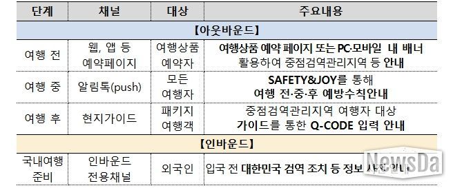 이번 업무협약은 여행자 건강 중심 검역체계 구축(’25.12월 발표)의 일환으로 추진된다. 여행객이 가장 먼저 접하는 여행사 채널을 통해 감염병·건강정보를 효과적으로 전달하고 스스로 건강을 챙기는 해외여행 문화를 확산하는데 목적이 있다.