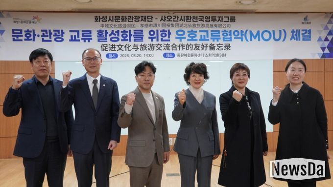 뉴스다 최광묵 기자 | 화성시문화관광재단은 3월 20일 동탄복합문화센터에서 중국 후베이성에 위치한 인구 약 417만 명 규모의 산업·관광 도시 샤오간시의 환천국유투자그룹과 문화·관광 교류 활성화를 위한 업무협약(MOU)을 체결했다.