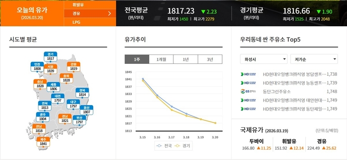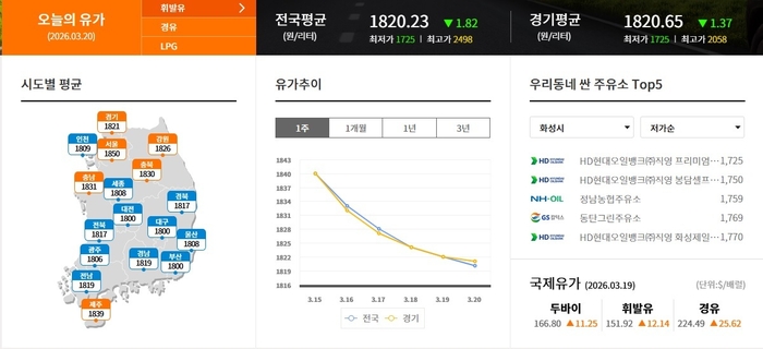 ▲화성시 휘발류 제일 싼 주유소 1725원 HD현대오일뱅크(주)직영 프리미엄