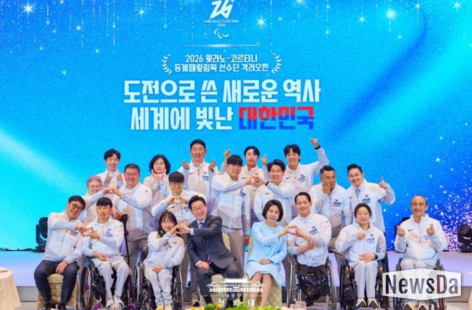뉴스다 최광묵 기자 | 이재명 대통령과 김혜경 여사는 20일 오후, 2026 밀라노-코르티나 동계 패럴림픽에서 대한민국을 빛낸 국가대표 선수단을 청와대로 초청하여 격려 오찬을 가졌다. 이번 오찬은 불굴의 투혼으로 국민들에게 감동을 선사한 선수들의 노고를 치하하기 위해 마련됐으며, 대회에 참가한 선수 전원이 참석해 자리를 빛냈다.