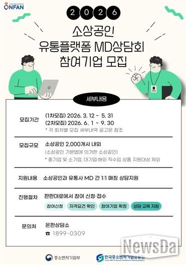 뉴스다 최광묵 기자 | 광주광역시는 지역 소상공인의 온라인 판로 확대와 경쟁력 강화를 위해 ‘2026 소상공인 유통플랫폼 상품기획자(MD) 상담회’ 참가업체 200곳을 오는 5월31일까지 모집한다.
