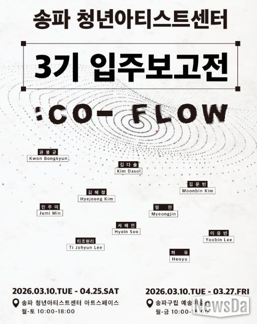 뉴스다 최광묵 기자 | 서울 송파구는 송파청년아티스트센터 제3기 입주작가 10인의 첫 전시 ‘Co-Flow’를 3월 10일 개최했다고 밝혔다.