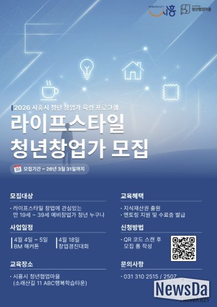 뉴스다 최광묵 기자 | 시흥시는 ‘2026 청년 창업가 육성 프로그램’의 일환으로 라이프스타일 분야 예비 청년창업가를 대상으로 실전형 창업 프로그램인 ‘창업 해커톤’과 ‘창업 경진대회’를 운영하고, 오는 3월 31일까지 참가자 30명을 모집한다.