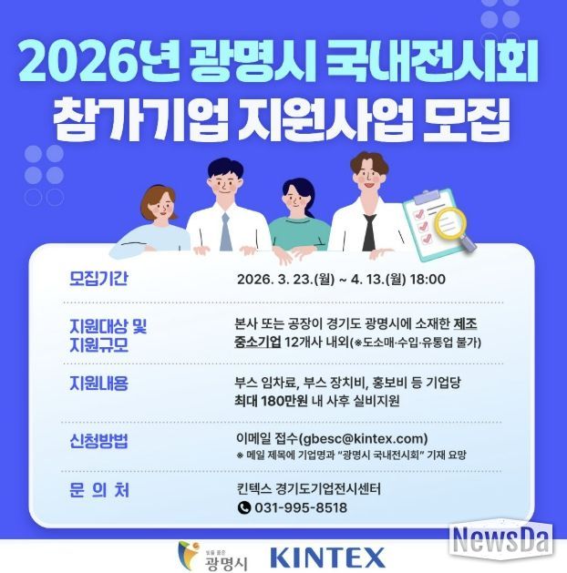 뉴스다 최광묵 기자 | 광명시가 국내 전시회에 참가하는 중소기업의 판로 개척과 마케팅을 지원한다.