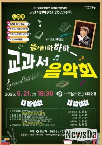 뉴스다 최광묵 기자 | 군산시립교향악단이 오는 5월 21일(목) 오후 7시 30분, 군산예술의전당 대공연장에서 제81회 기획연주회 ‘교과서 음악회’를 개최한다.