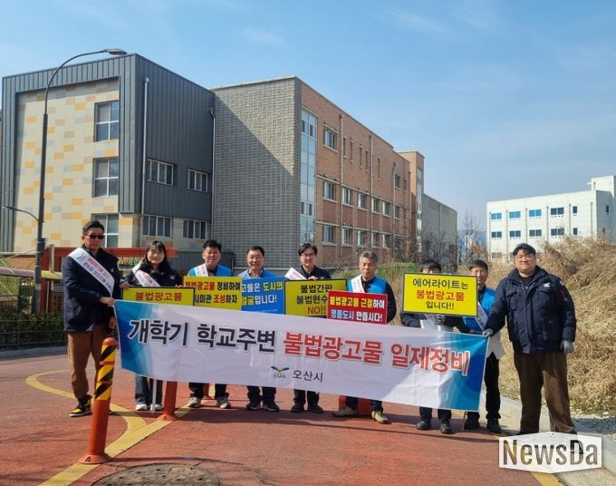 뉴스다 최광묵 기자 | 오산시는 2026년 3월 개학기를 맞아 학생들의 안전한 통학 환경 조성과 쾌적한 교육 여건 마련을 위해 학교 주변 불법 현수막에 대한 일제 정비를 추진하고 있다고 밝혔다.