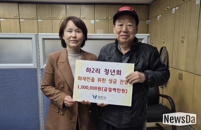 뉴스다 최광묵 기자 | 과천시 과천동 하2리 청년회는 최근 화재로 거주지를 잃고 이재민 보호시설에 임시 거주 중인 이 모 씨(63세) 가구에 긴급 지원금 100만 원을 지난 18일 전달했다.