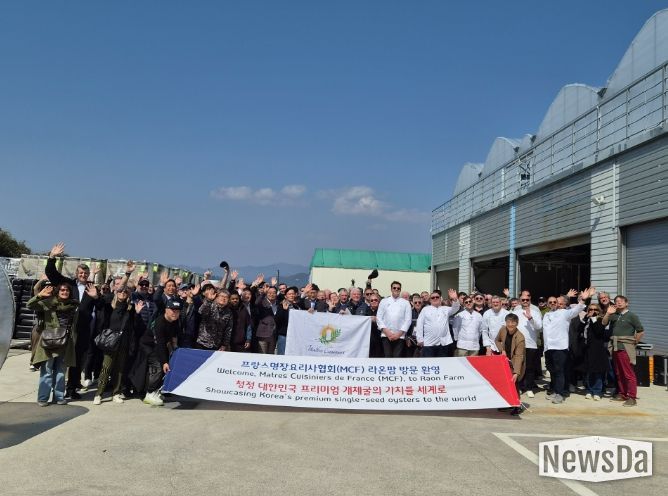 뉴스다 최광묵 기자 | 세계 최고의 미식 권위를 자랑하는 프랑스명장요리사협회(Maîtres Cuisiniers de France) 소속 셰프 180여 명을 포함한 관계자 200여 명이 2026년 3월 21일 경남 거제시의 개체굴 생산 현장인 ‘라온팜’(대표 엄성)을 방문했다.