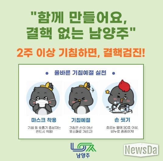 뉴스다 최광묵 기자 | 남양주시는 3월 23일부터 27일까지 관내 주요 역사와 보건소 일대에서 결핵 예방과 조기 발견의 중요성을 알리기 위한 홍보 캠페인을 실시한다고 밝혔다.