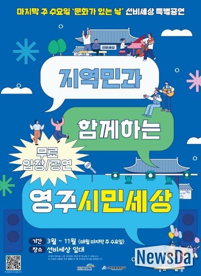 뉴스다 최광묵 기자 | 선비문화테마파크는 매월 마지막 주 수요일 ‘문화가 있는 날’을 맞아 관내 문화예술 단체가 참여하는 문화 공연 ‘지역민과 함께하는 영주시민세상’을 운영한다.