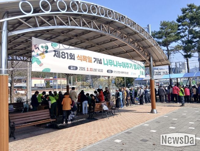 뉴스다 최광묵 기자 | 함안군은 지난 24일 함안공설운동장(가야읍)과 함안군종합사회복지관(칠원읍)에서 제81회 식목일을 기념하고 기후위기 대응을 위한 탄소 중립 실천 문화를 넓히기 위해 ‘2026년 나무 나누어주기 행사’를 진행했다고 밝혔다.