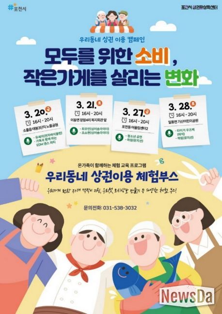 뉴스다 최광묵 기자 | 포천시는 오는 27일 포천동 어울림센터2와 28일 일동면 기산어린이공원에서 지역상권 활성화를 위한 ‘우리동네 상권이용 캠페인’을 개최한다.