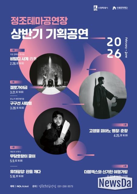 뉴스다 최광묵 기자 | 수원문화재단은 오는 4월부터 6월까지 정조테마공연장에서 전통예술의 현대적 확장을 주제로 한 기획공연 4편을 선보인다.