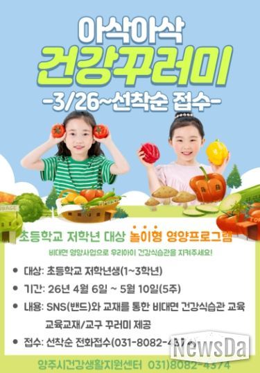 참여 신청은 오는 3월 26일부터 양주시 건강생활지원센터를 통해 전화로 접수할 수 있다. 대상은 관내 초등학교 저학년 학생이며, 선착순으로 모집이 진행돼 조기 마감될 수 있다.