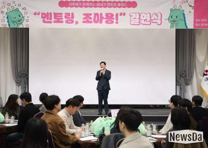 뉴스다 최광묵 기자 | 용인특례시는 24일 시청 컨벤션홀에서 신규 공직자의 원활한 조직 적응과 성장을 지원하기 위한 ‘2026년 멘토링 조아용’ 결연식을 개최했다.