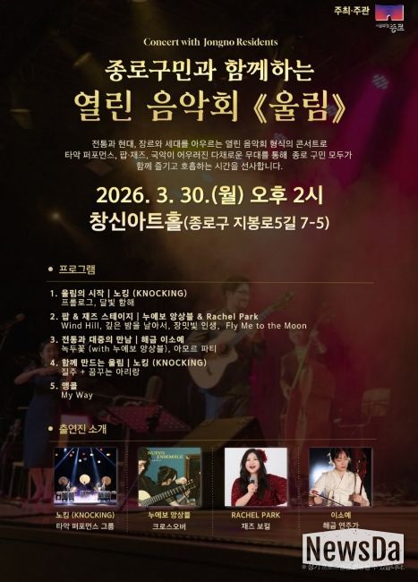 뉴스다 최광묵 기자 | 종로구가 봄을 맞아 도심 곳곳을 문화의 온기로 채울 무료 음악 공연을 선보인다.