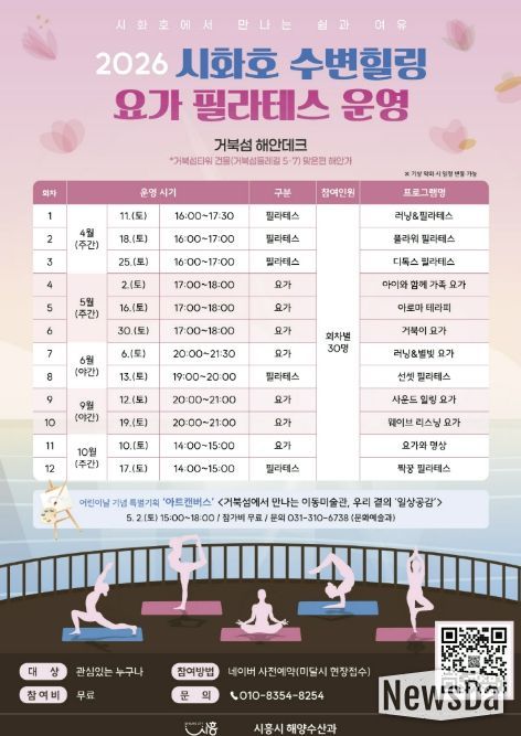 뉴스다 최광묵 기자 | 시흥시는 시화호 수변의 자연경관을 활용해 시민들에게 일상의 여유와 휴식을 제공하는 ‘시화호 수변 힐링 프로그램’을 오는 4월 11일부터 10월 17일까지 운영한다.