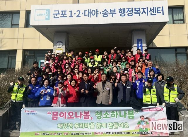뉴스다 최광묵 기자 | 지난 3월 24일 깨끗한 도시환경 조성을 위해 군포1동 전역 새봄맞이 대청소를 실시했다.