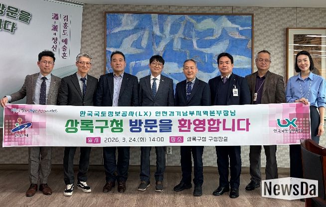 뉴스다 최광묵 기자 | 안산시는 지난 24일 지적 행정 업무 협력 강화를 위해 한국국토정보공사(LX) 인천경기남부지역본부와 ‘지적 업무 간담회’를 개최했다고 25일 밝혔다.