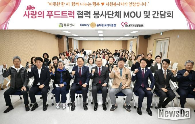 뉴스다 최광묵 기자 | 동두천시자원봉사센터는 지난 24일 생연공유누리센터 강당에서 12개 자원봉사단체와 동두천 로타리클럽이 참여한 가운데 ‘사랑의 푸드트럭’ 운영 활성화를 위한 업무협약(MOU)과 간담회를 개최했다.