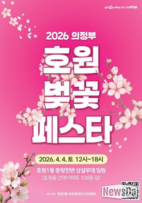 뉴스다 최광묵 기자 | 의정부시 호원1동주민센터는 4월 4일 낮 12시부터 오후 6시까지 호원1동 중랑천변 상설무대 일원에서 ‘2026 의정부 호원 벚꽃 페스타’를 개최한다.