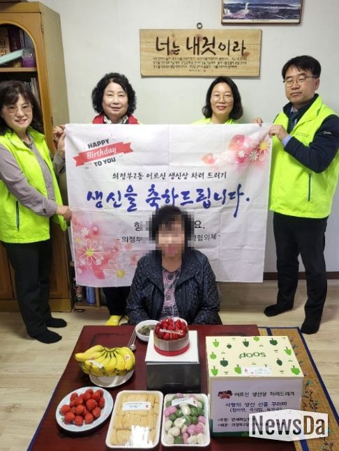 뉴스다 최광묵 기자 | 의정부시 의정부2동주민센터는 3월 24일 관내 독거노인 가구를 방문해 정성 가득한 생신상을 제공하는 ‘찾아가는 생신 축하’ 행사를 진행했다.