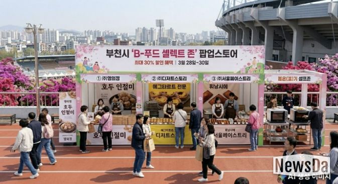 뉴스다 최광묵 기자 | 부천시는 3월 28일부터 30일까지 3일간 부천종합운동장 2층 트랙에서 ‘부천페스타 봄꽃여행’과 연계한 식품제조업소 팝업스토어 ‘B(Bucheon)-푸드 셀렉트 존’을 운영한다.
