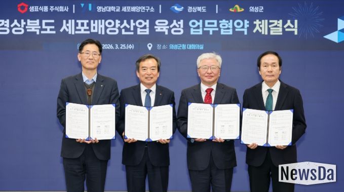 뉴스다 최광묵 기자 | 의성군은 25일 군청 대회의실에서 경상북도, 샘표식품 주식회사, 영남대학교 세포배양연구소와 함께 ‘경상북도 세포배양산업 육성을 위한 다자간 업무협약(MOU)’을 체결했다고 밝혔다.