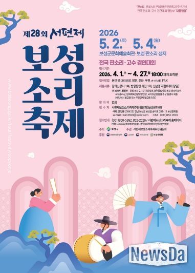 뉴스다 최광묵 기자 | 보성군은 대한민국 대표 전통예술 축제인 ‘제28회 서편제보성소리축제’를 오는 5월 2일부터 4일까지 보성군 일원에서 개최한다고 밝혔다.