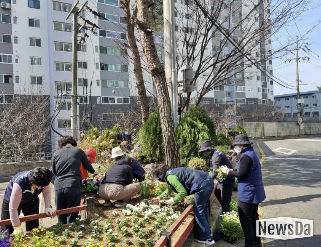 뉴스다 최광묵 기자 | 구리시 인창동 행정복지센터는 3월 24일 봄을 맞아 주민들이 심신의 안정을 느낄 수 있는 힐링 환경 조성을 위해 봄꽃 식재 행사를 했다.
