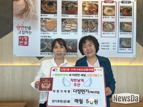 한편 신장1동은 착한가게 발굴을 지속적으로 확대하며 지역 내 나눔문화 확산과 촘촘한 돌봄체계 구축을 위한 다양한 복지사업을 이어갈 계획이다.