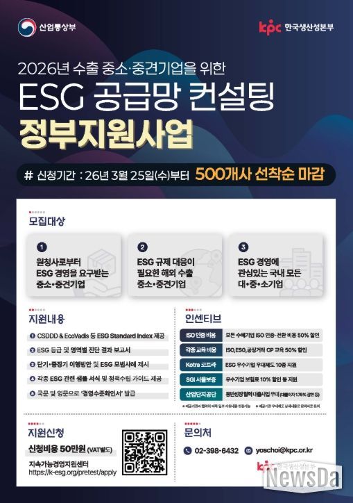 박동일 산업정책실장은 “기업의 지속가능경영은 우리 산업의 글로벌 경쟁력을 갖추기 위한 핵심 전략”이라고 평가하며, “산업부는 관련 협회 및 지원기관과 중소·중견기업 ESG 합동 지원망을 구축하여, 교육부터 컨설팅, 공시 대응까지 기업이 체감할 수 있는 밀착 지원을 아끼지 않겠다”고 밝혔다.
