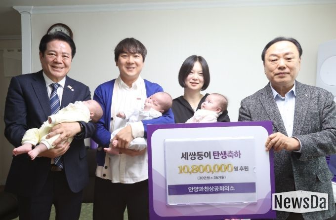 뉴스다 최광묵 기자 | 안양시와 안양과천상공회의소는 지난해 말 세쌍둥이를 출산한 동안구의 한 가정과 일곱째 자녀를 출산한 만안구의 한 가정을 축하 방문했다.