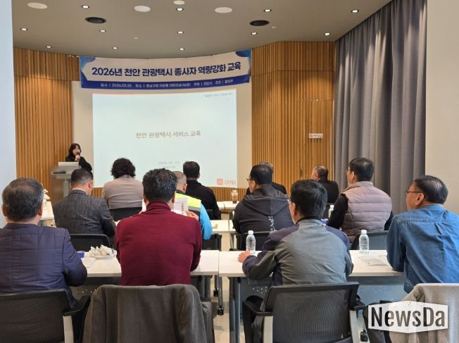 뉴스다 최광묵 기자 | 천안시는 ‘관광택시’ 시범운영을 앞두고 25일 동남구청 타운홀 대회의실에서 참여 운행기사 12명을 대상으로 사전 교육을 실시했다.