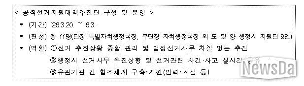 한편, 제주도는 지난 3월 11일 '제9회 전국동시지방선거 공명선거 추진계획'을 수립하고 특별자치행정국장을 단장으로 하는 `공명선거지원대책추진단’을 구성·운영하고 있다.