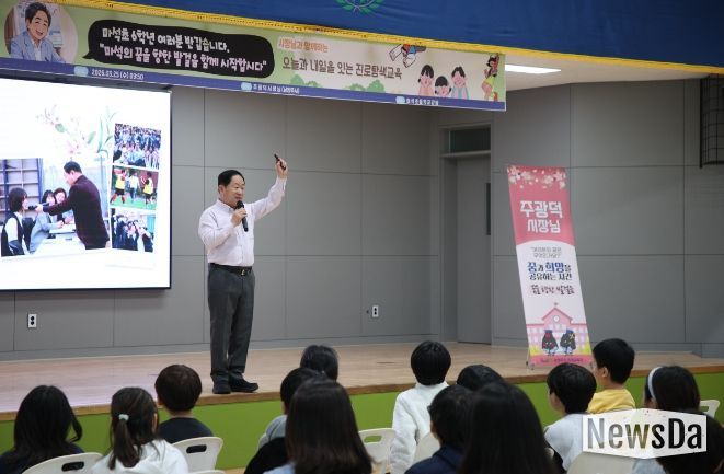 뉴스다 최광묵 기자 | 남양주시는 25일 마석초등학교 6학년 학생을 대상으로 진로특강을 열고 학생들에게 꿈과 희망의 메시지를 전달했다고 밝혔다.