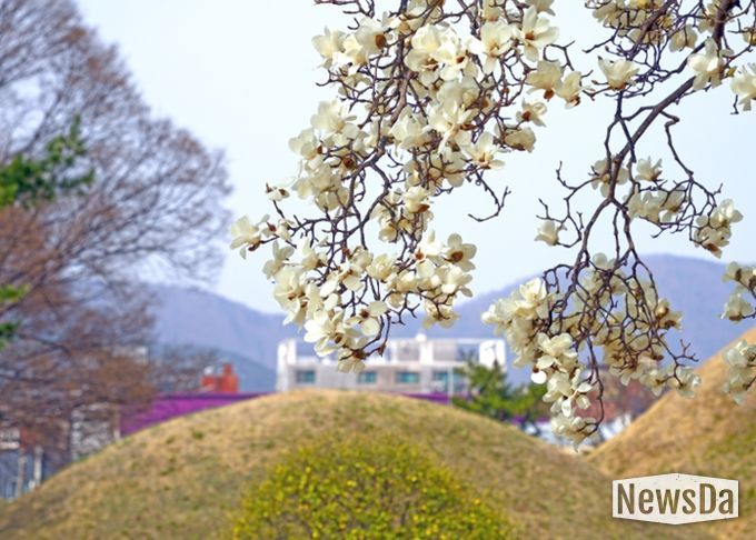 3월 말에는 고분군 일대에 목련이 피어나면서 봄철 경주의 또 다른 매력을 보여준다.