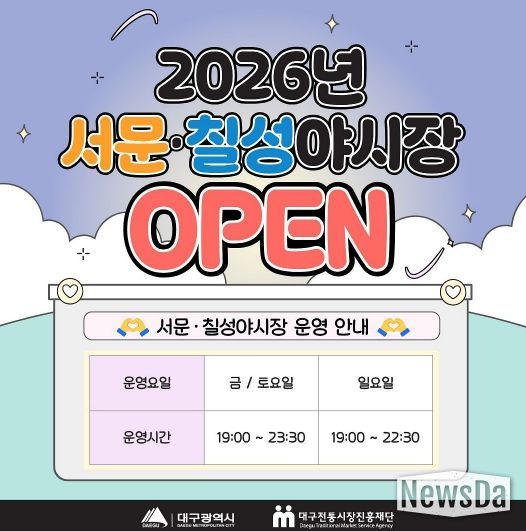 뉴스다 최광묵 기자 | 전국적인 야간 관광 명소로 사랑받는 ‘서문·칠성 야시장’이 약 3개월간의 동절기 휴장을 마치고 3월 27일부터 본격적인 운영에 들어간다.