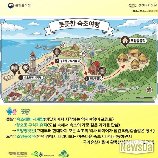 뉴스다 최광묵 기자 | 속초시는 국가유산청 공모사업인 2026년 생생 국가유산 사업의 하나로 추진하는 도보형 인문학 체험 프로그램 ‘발로 읽고 가슴으로 느끼는 풋풋(foot foot)한 속초여행’ 참가자를 3월 27일부터 사전 모집한다.
