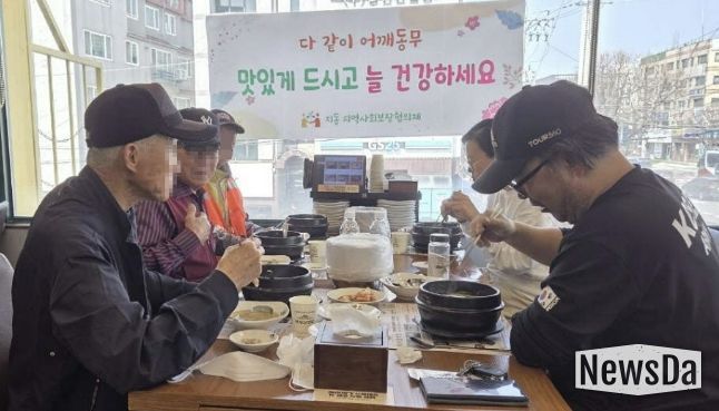 뉴스다 최광묵 기자 | 수원시 팔달구 지동 지역사회보장협의체는 지난 25일 홀몸 어르신들을 위한 ‘다 같이 어깨동무’ 특화사업을 운영했다. ‘다 같이 어깨동무’는 2024년부터 추진 중인 지동 지역사회보장협의체의 대표 사업으로, 분기마다 비슷한 연령대의 홀몸 어르신 3명과 협의체 위원 2명이 함께 식사를 하며 정서적 교류와 사회적 관계 형성을 지원하고 있다.