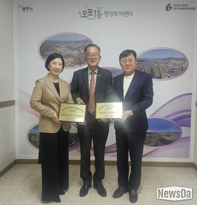 뉴스다 최광묵 기자 | 광주시 오포1동은 지난 25일 경기도 유공납세자로 선정된 삼화엔지니어링㈜ 대표와 ㈜제이와이이 대표에게 유공납세자 현판을 전달했다.