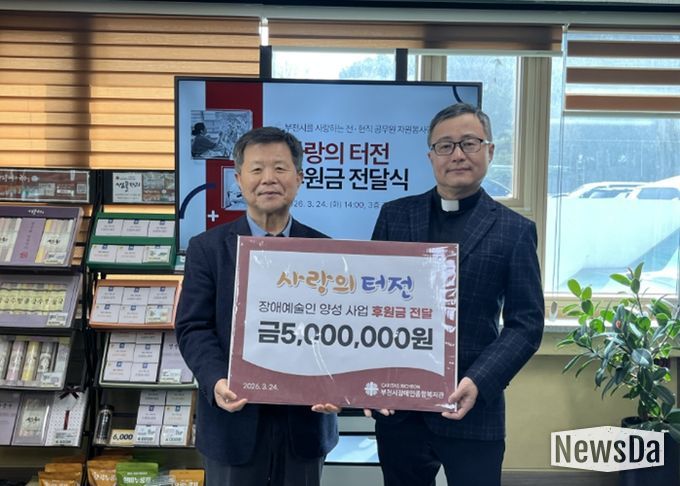 사랑의 터전은 지난 3월 24일(화), 부천시장애인종합복지관에 후원금 500만원을 전달했다. 이번 후원금은 장애예술인 발굴을 위한 아카데미 프로그램 운영에 사용될 예정으로, 장애인의 문화·예술 활동 참여 확대에 기여할 것으로 기대된다.