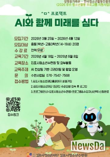 뉴스다 최광묵 기자 | 김포시청소년재단 김포시청소년수련원이 성평등가족부와 한국청소년활동진흥원이 주관하는 ‘2026년 우수 청소년활동 프로그램 지원사업’에 선정되어 참가 청소년을 모집한다고 밝혔다.