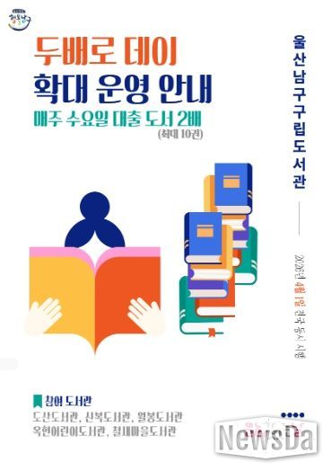 뉴스다 최광묵 기자 | 울산 남구는 시민들의 독서 문화 확산과 도서관 이용 활성화를 위해 ‘두배로 데이’를 기존 월 1회에서 주 1회로 확대 운영한다.