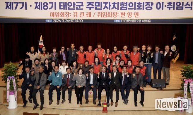 뉴스다 최광묵 기자 | 태안군 주민자치협의회가 26일 태안문화원에서 가세로 군수와 주민자치위원 등 200여 명이 참석한 가운데 제7·8대 회장 이·취임식을 갖고 새 출발을 알렸다.